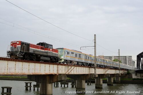いつも当ブログにご来訪いただきまして、ありがとうございます(感謝!)。 豊川の日車(日本車輌製造)から名鉄甲種(出場)がありましたので、 今回も森岡跨線橋へ出かけてきました。 いつものようにこちらから…… 2021.4.7 59レ EF210-320(吹) 2021.4.7 20…